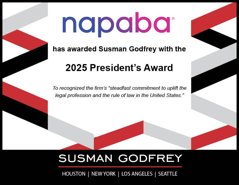 The 2025 National Asian Pacific American Bar Association (NAPABA) President’s Award has been presented to Susman Godfrey at the organization’s annual conference in Denver, Colorado. The award is given to recognize, “the firm’s steadfast commitment to uplift the legal profession and the rule of law in the United States.”
